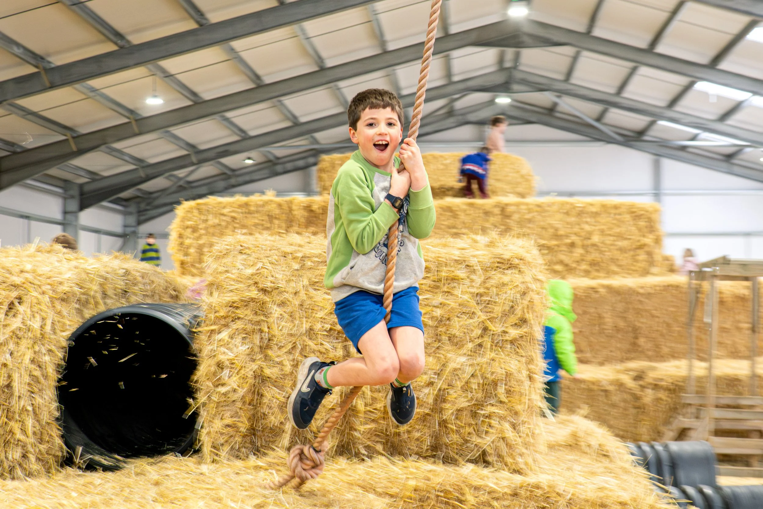 If you loved our outdoor Big Bale Play, you’re going to love this cosy all-weather version. Imagine mountains of giant straw bales to climb, jump, scramble and conquer all safely tucked inside our shiny new shed.